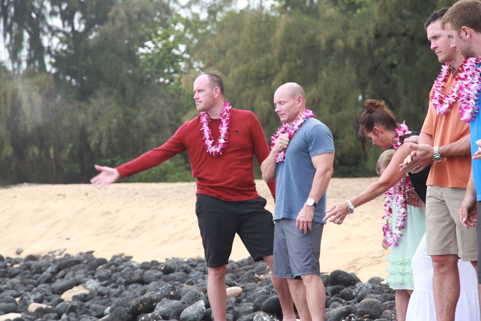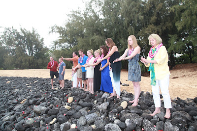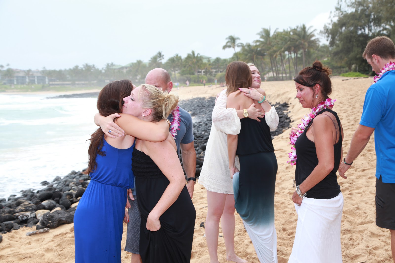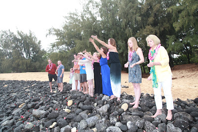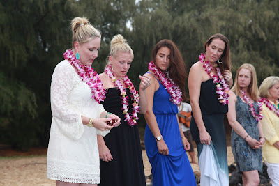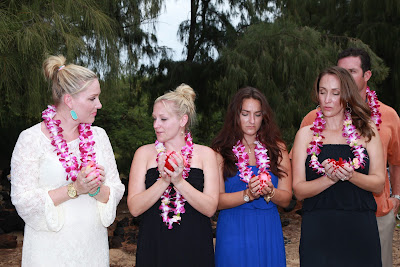 Once Lauren and Makepa arrived, we put leis over each other’s necks and walked out to the water for the ceremony. We held each other tightly as Lauren spoke beautifully about the 4 elements of the earth and attributed each to our mom. Makepa sang “You are my Sunshine,” and put extra emphasis on the “you make me happy when skies are grey.” As those words came from his mouth, the sun came from behind the clouds.