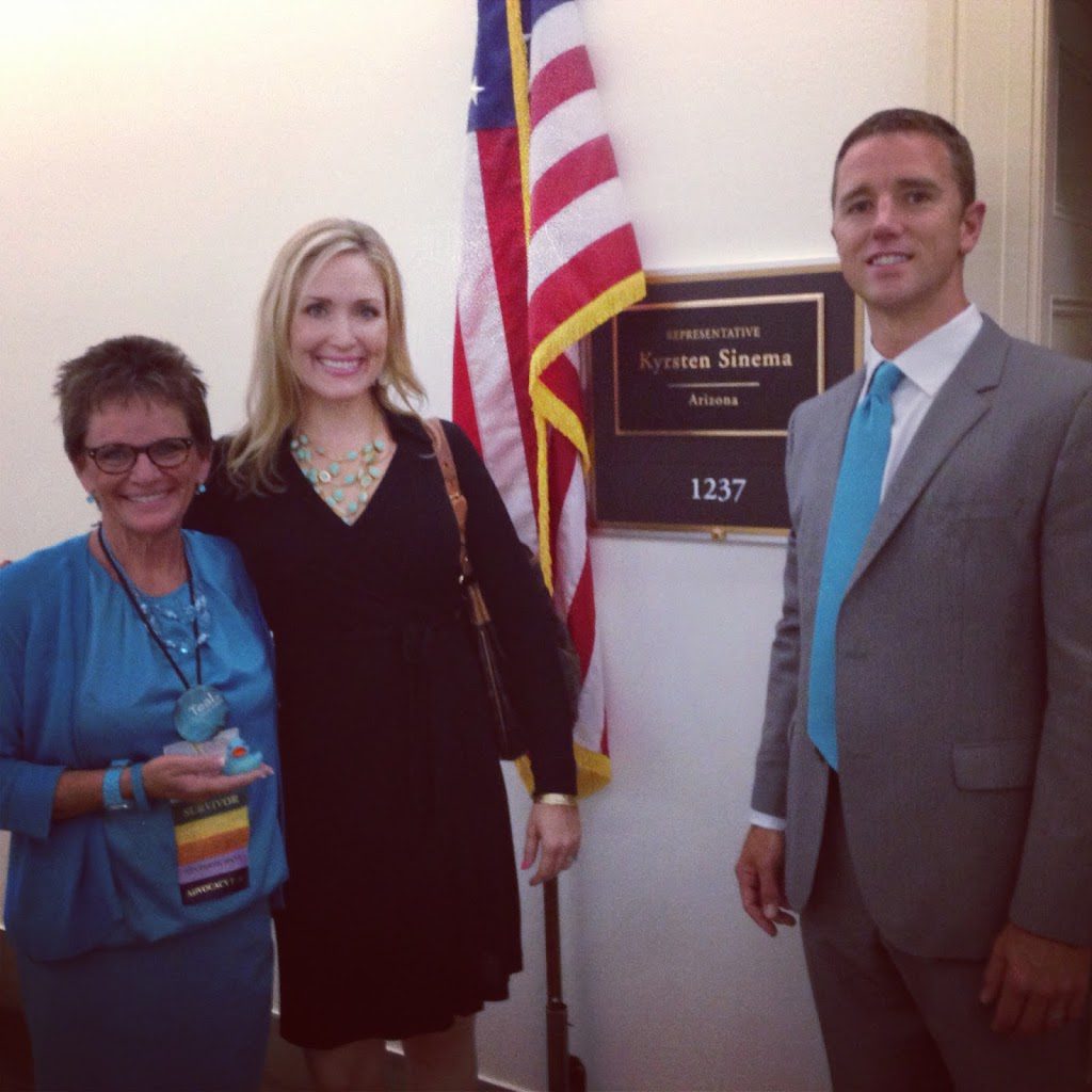 The effects of your participation in Advocacy Day and the meetings you had with your Representatives are already being seen. Today we received an email from Nicky Borselli notifying us that Congresswoman Sinema has officially signed on as a Cosponsor for the Ovarian Cancer Awareness Resolution. Time that you spent telling your stories was not wasted – every story that was told is another step towards awareness of Ovarian Cancer, vital research funding, and equitable access to anti-Cancer drugs.